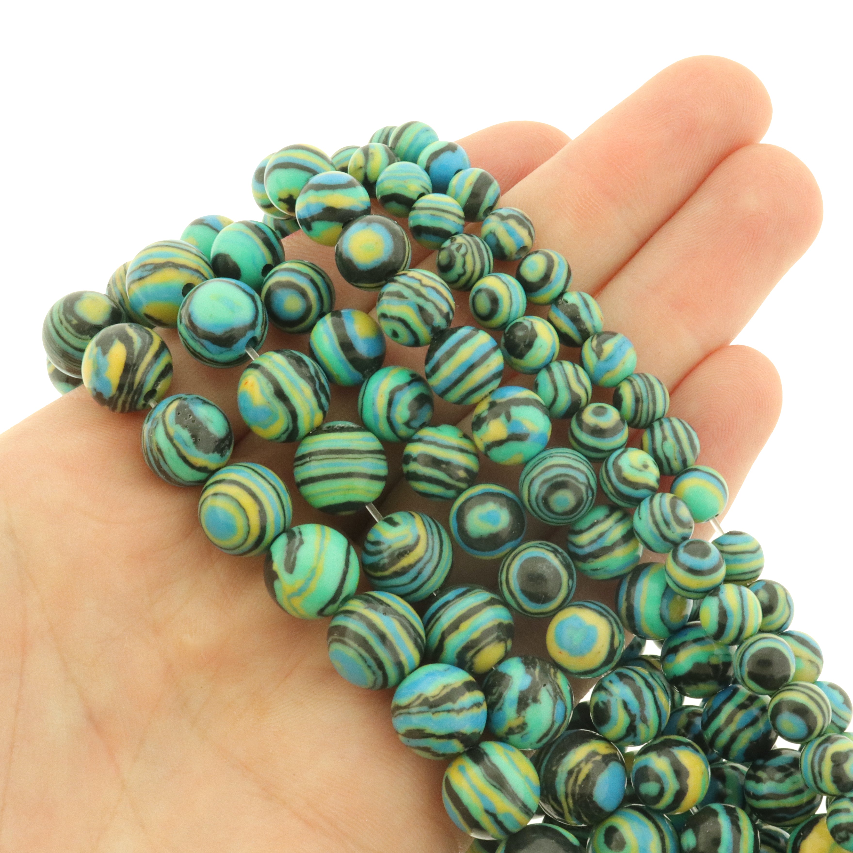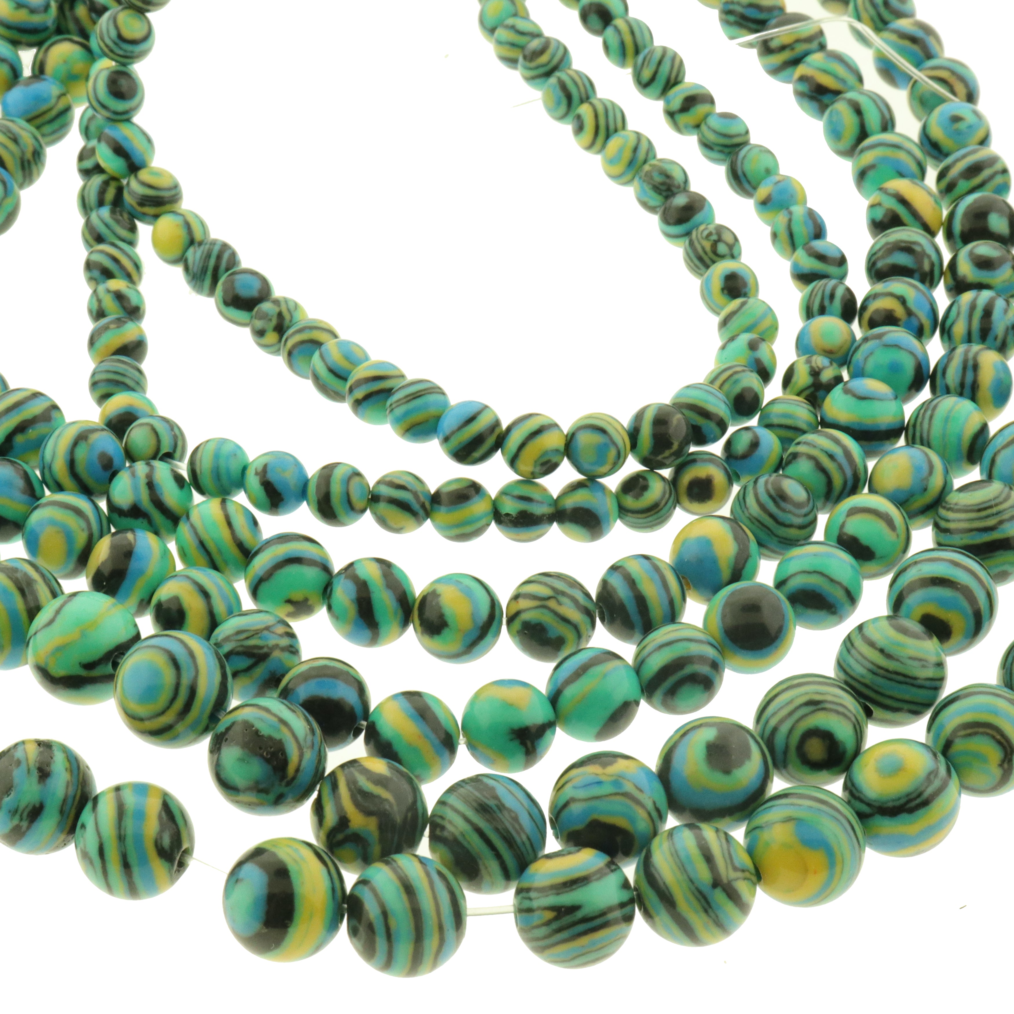 Perles imitation malachite vertes et noires en rond de 4 mm, 6 mm, 8 mm, 10 mm, 12 mm ou 14 mm, avec une finition polie. Parfait pour les piles de bracelets, colliers, boucles d'oreilles et bien plus encore.
