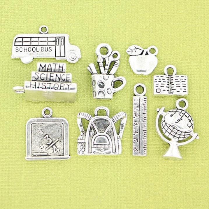 Collection sur le thème de l'école de breloques argentées antiques, en alliage de zinc. Parfait pour les bracelets, pendentifs, boucles d'oreilles, tirettes de fermeture éclair, signets et porte-clés !