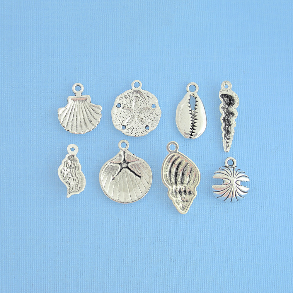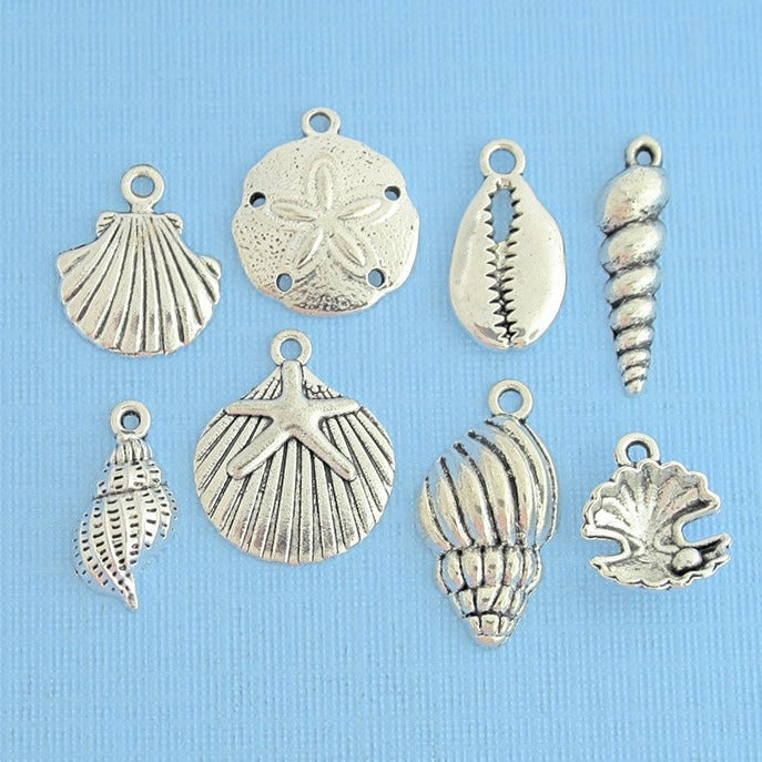 Collection de breloques argentées antiques sur le thème des coquillages, dans un métal en alliage de zinc. Parfait pour les bracelets, pendentifs, boucles d'oreilles, tirettes de fermeture éclair, signets et porte-clés !