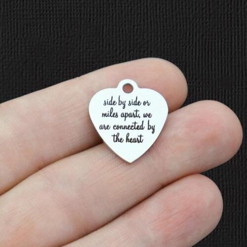 "Côte à côte, ou à des kilomètres l'un de l'autre, nous sommes connectés par le cœur" charms cœur en acier inoxydable gravés au laser , de notre ligne exclusive conçue par Bohemian Findings.