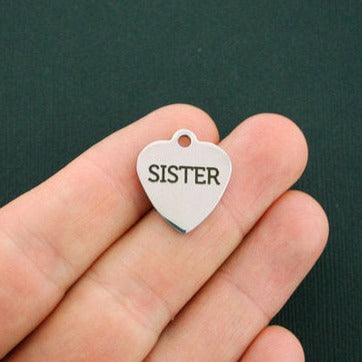 Breloques cœur en acier inoxydable gravées au laser "Sister", de notre ligne exclusive conçue par Bohemian Findings.