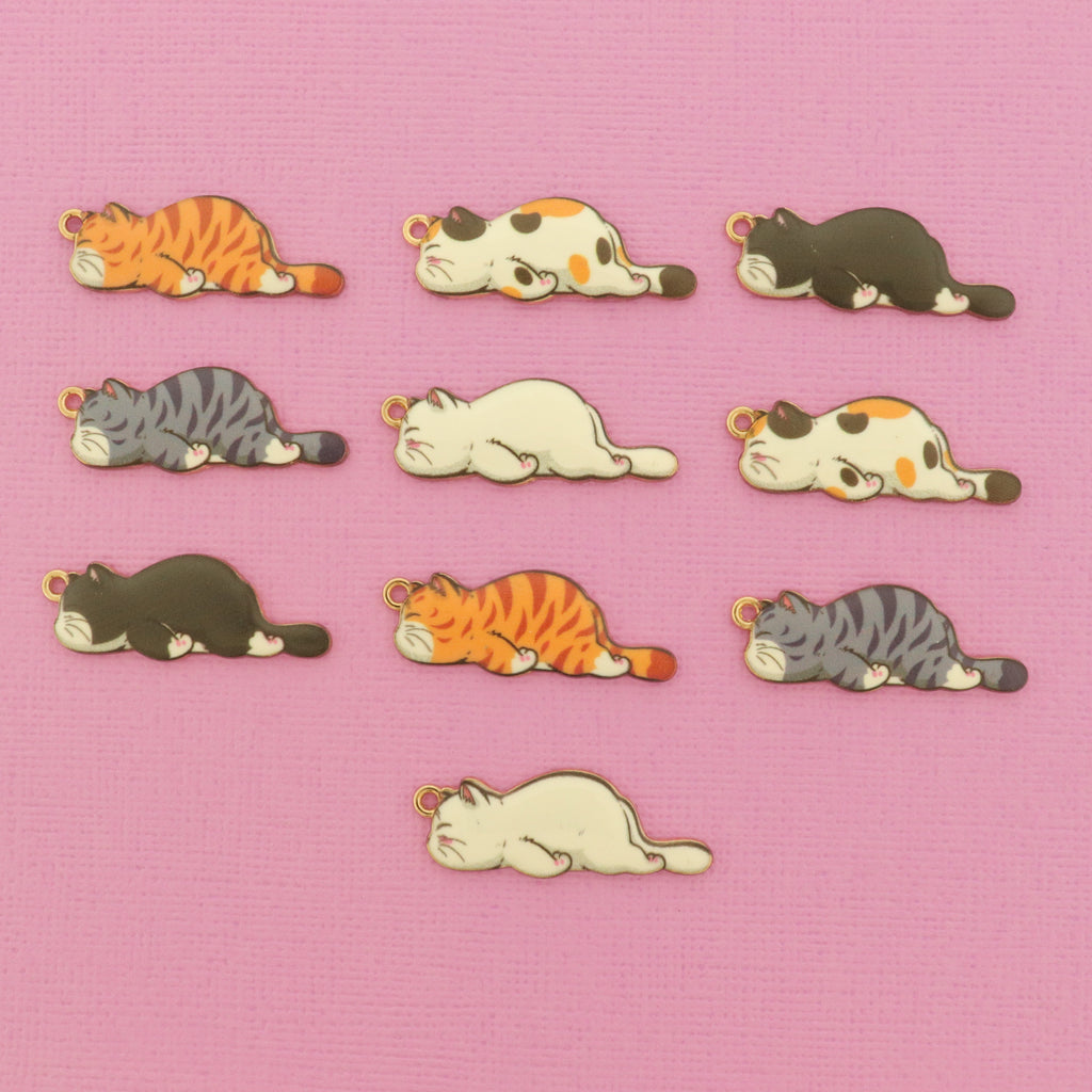 Sleeping cat charm collection - made of gold tone alloy and enamel... all are super cute!