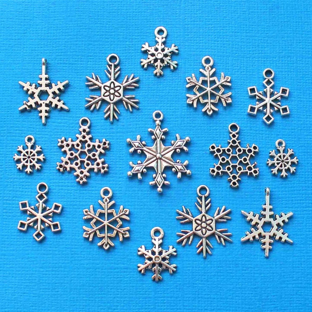 Collection sur le thème des flocons de neige de breloques argentées antiques, dans un métal en alliage de zinc. Parfait pour les bracelets, pendentifs, boucles d'oreilles, tirettes de fermeture éclair, signets et porte-clés !