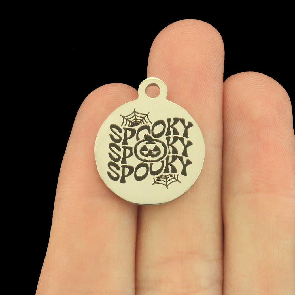 Breloques rondes en acier inoxydable gravées au laser "Bite me", de notre ligne exclusive conçue par Bohemian Findings.