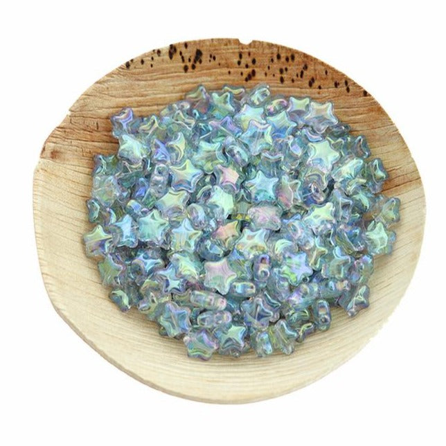 Perles transparentes en étoile de 8 mm, avec une finition électrolytique. Parfait pour les piles de bracelets, colliers, boucles d'oreilles et bien plus encore.