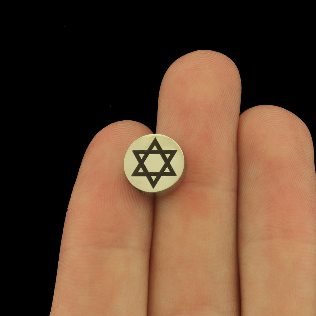 Star of David laser engraved stainless steel beads. Choose from three sizes - 6mm, 8mm, or 10mm! Perfect to add a personalized touch to a beaded bracelet.