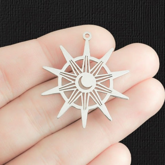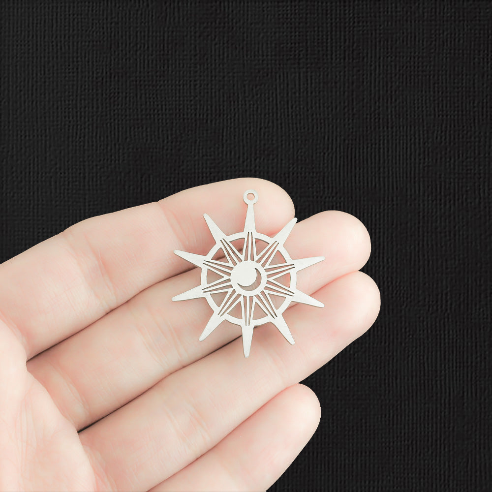 Breloques soleil et lune argentées, en acier inoxydable 201. Parfait pour les bracelets, pendentifs, boucles d'oreilles, tirettes de fermeture éclair, signets et porte-clés !