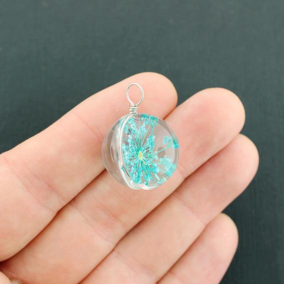 Pendentif v ish bleu roi avec breloques de fleurs séchées argentées, en alliage de zinc et verre. Parfait pour les bracelets, pendentifs, boucles d'oreilles, tirettes de fermeture éclair, signets et porte-clés !