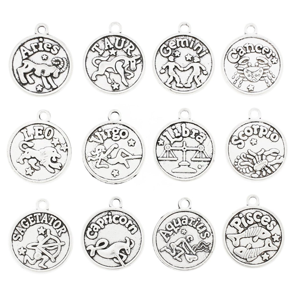Breloques de ton argent antique du zodiaque, dans un métal en alliage de zinc. Parfait pour les bracelets, pendentifs, boucles d'oreilles, tirettes de fermeture éclair, signets et porte-clés !