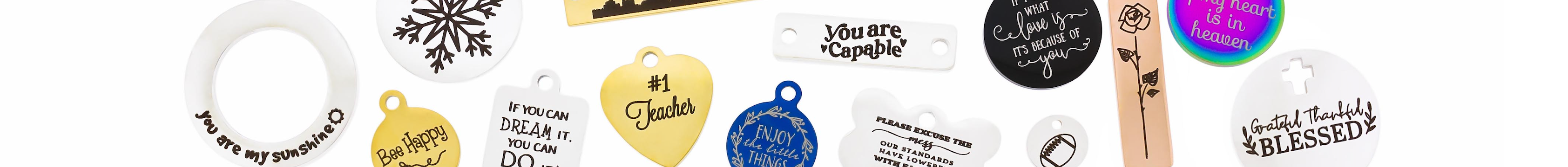 Explore our collection of engraved charms, made from high-quality stainless steel. Hypoallergenic and available in a variety of finishes, including silver, gold, rose gold, black, blue, and rainbow tones, these charms are made to order and engraved in-house within just 1 business day. With over 40 unique shapes to choose from, they’re perfect for creating personalized bracelets, necklaces, keychains, and more. Add a custom touch to your jewelry-making projects and start creating today!