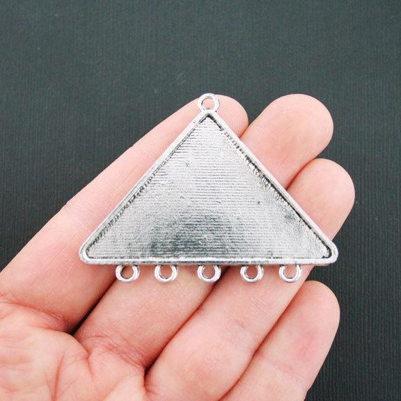Triangle with flower details antique silver tone multi connector charm, in a zinc alloy metal.