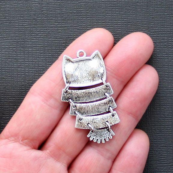 Owl with jointed dangle body antique silver tone charms with inset black rhinestones, in a zinc alloy metal.