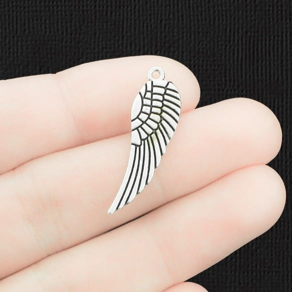 Angel wing antique silver tone charms, in a zinc alloy metal.