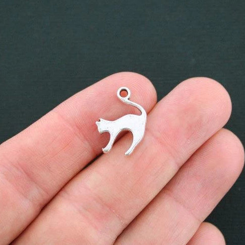 Cat silhouette antique silver tone charms, in a zinc alloy metal.