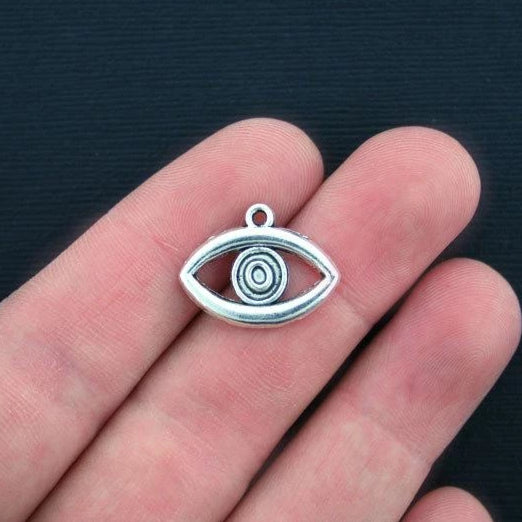 Evil eye antique silver tone charms, in a zinc alloy metal.