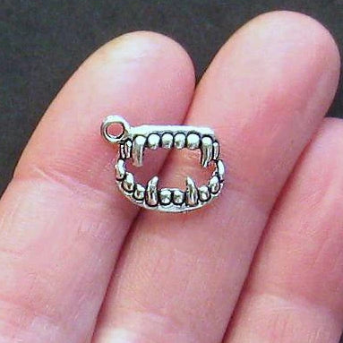 Fangs antique silver tone charms, in a zinc alloy metal.