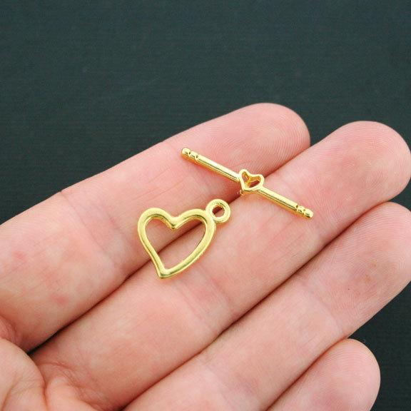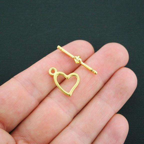 Heart toggle clasps gold tone, in a zinc alloy metal.
