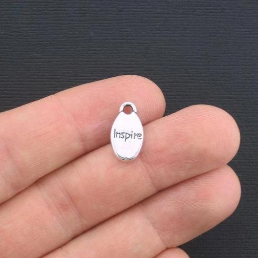 Inspire tag antique silver tone charms, in a zinc alloy metal.