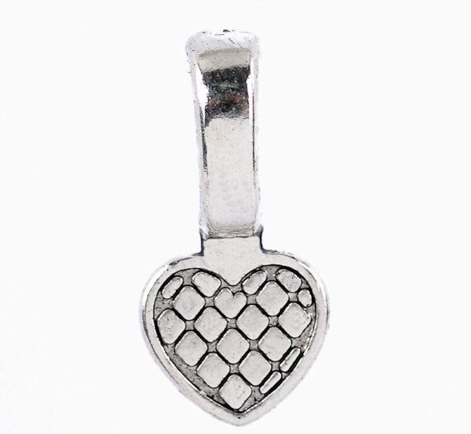 Antique silver tone glue on bails with a heart design in a zinc alloy, for earrings and pendants!