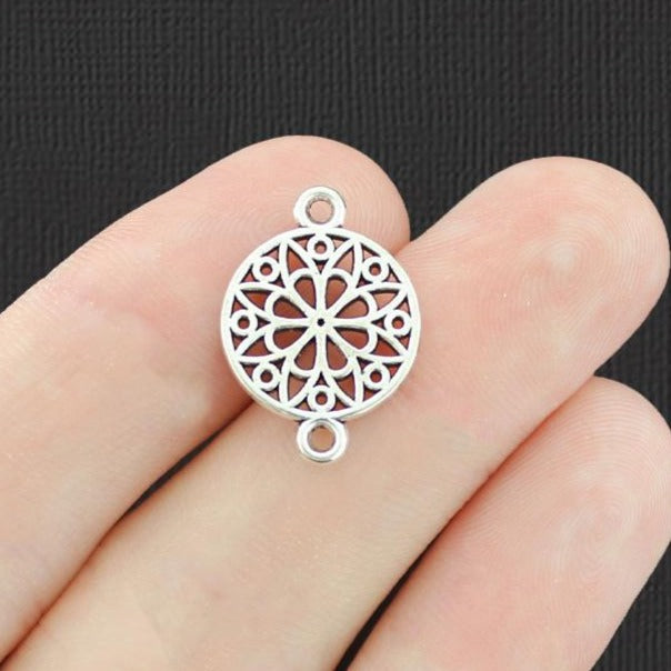 Dream catcher design antique silver tone connector charms, in a zinc alloy metal.