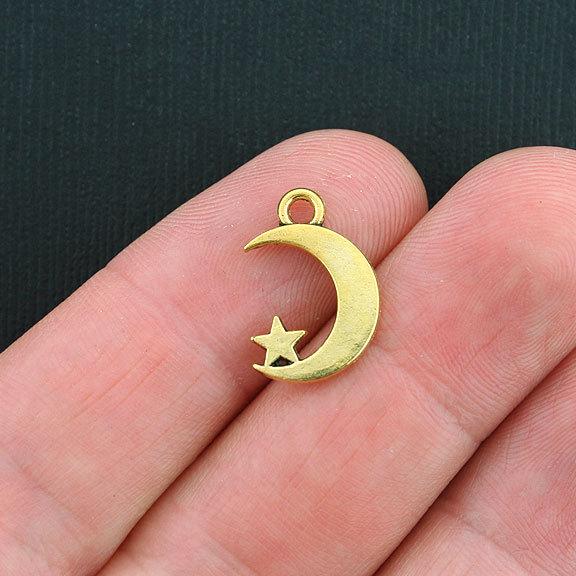Moon and star antique gold tone charms, in a zinc alloy metal.