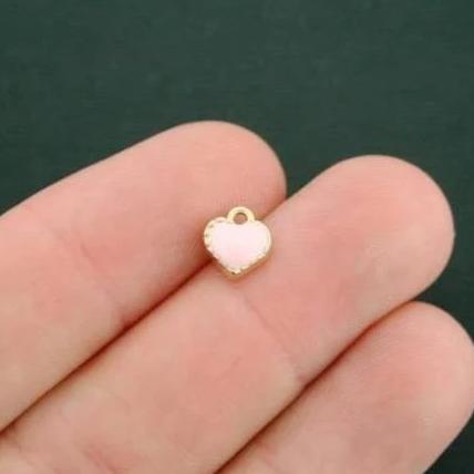 Heart gold tone charms, in a zinc alloy metal and enamel.