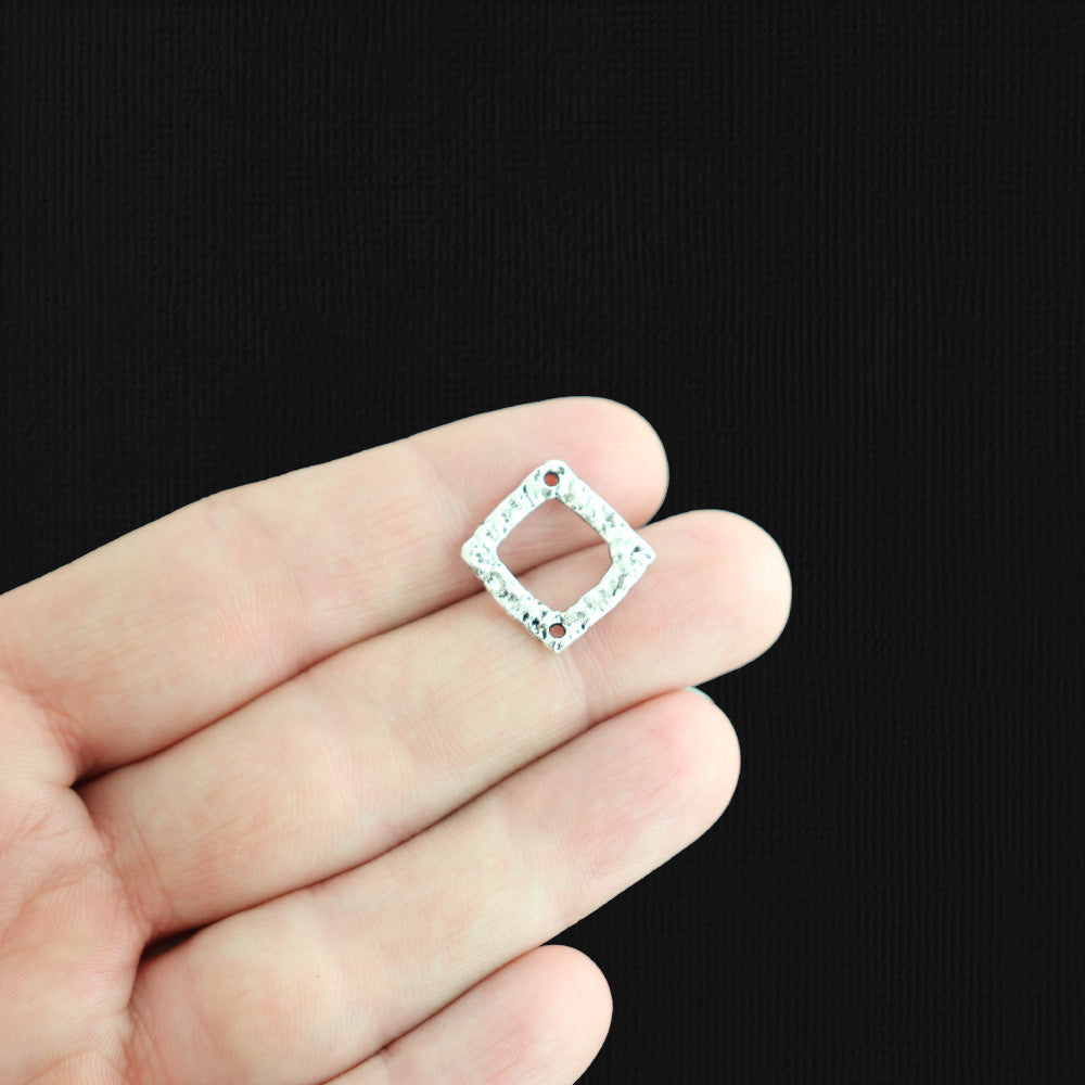 Rhombus antique silver tone connector charms, in a zinc alloy metal.