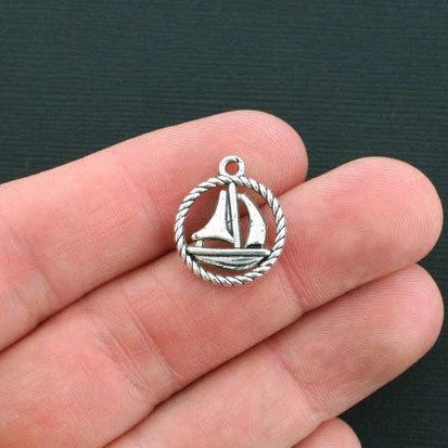 Sailboat antique silver tone charms, in a zinc alloy metal.