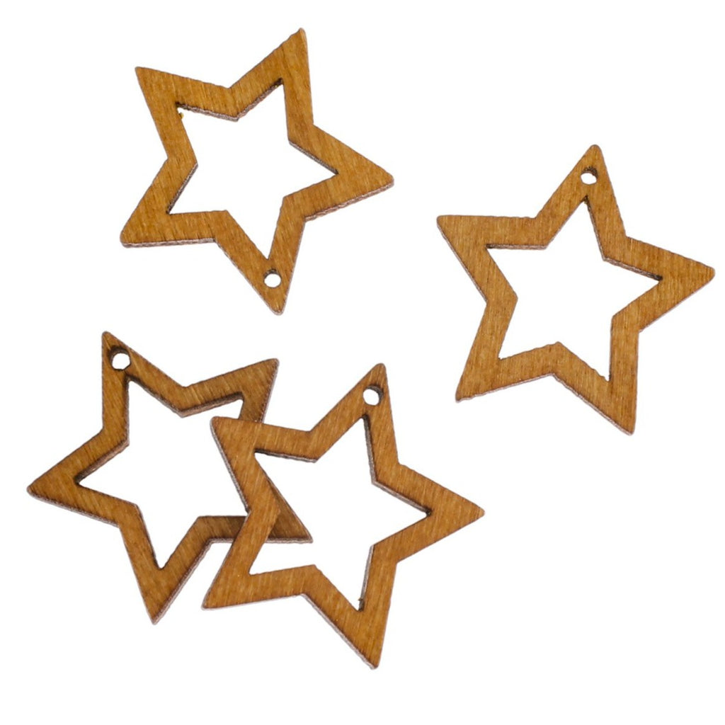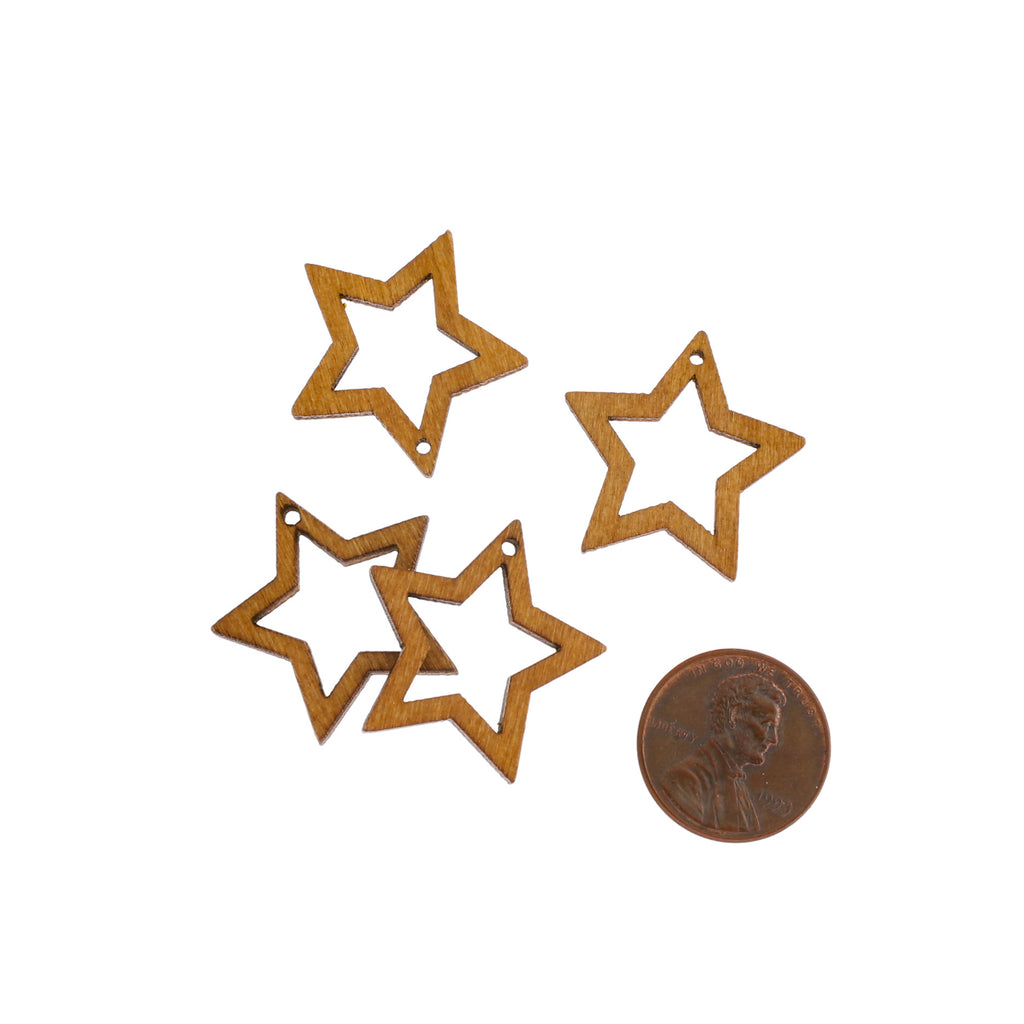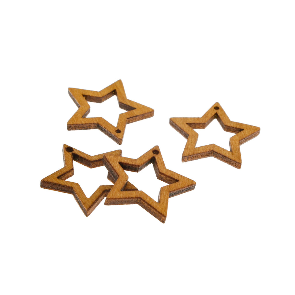 Open star natural wood charms.