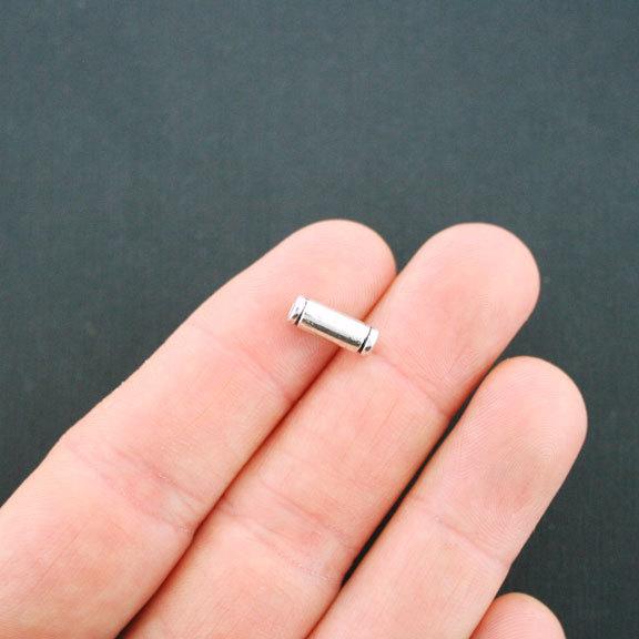 Silver tone zinc alloy metal beads in a 12mm x 4mm spacer, with a metallic finish.