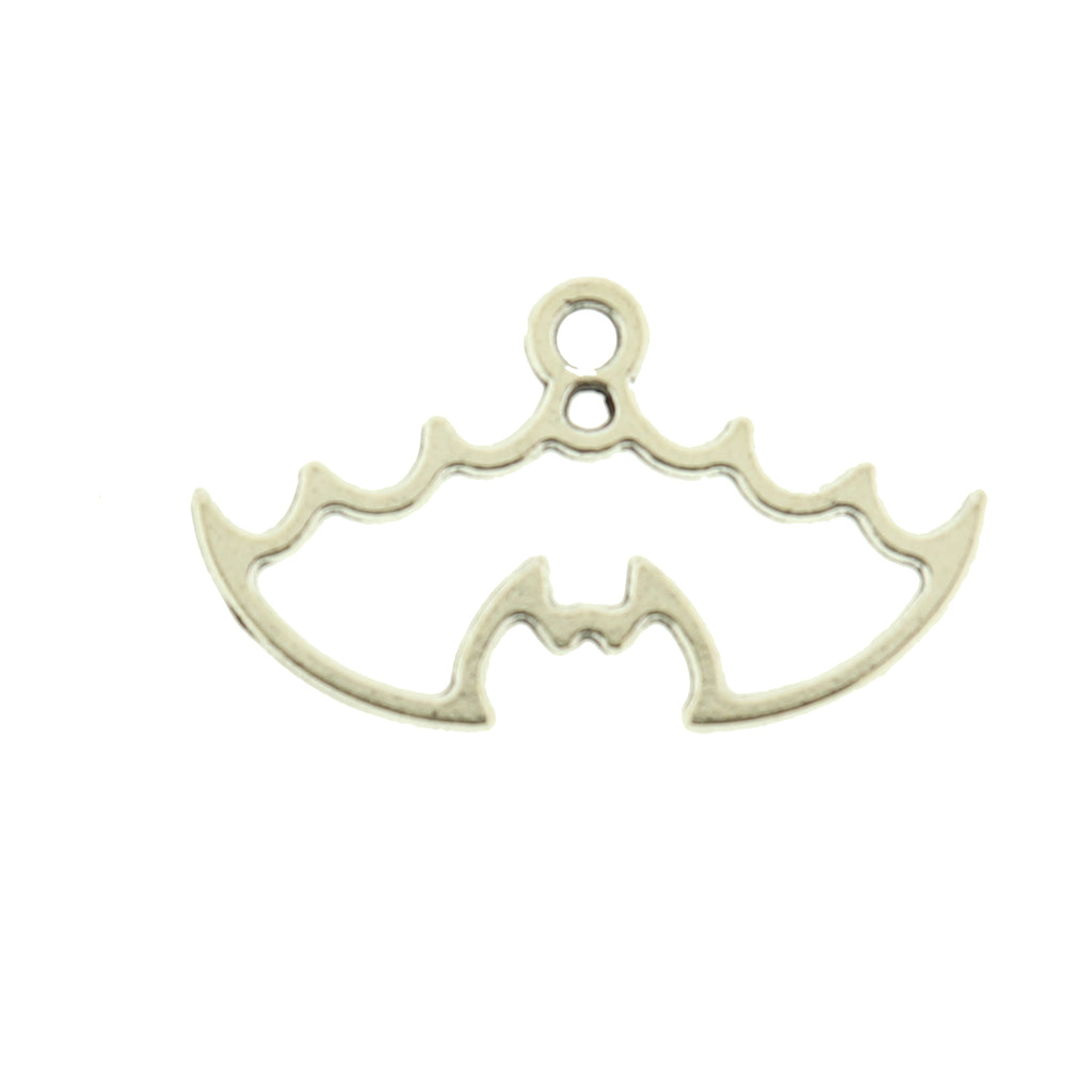 Bat outline silver tone charms, in a zinc alloy metal.