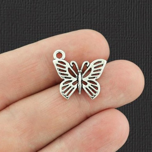 Butterfly antique silver tone charms, in a zinc alloy metal.