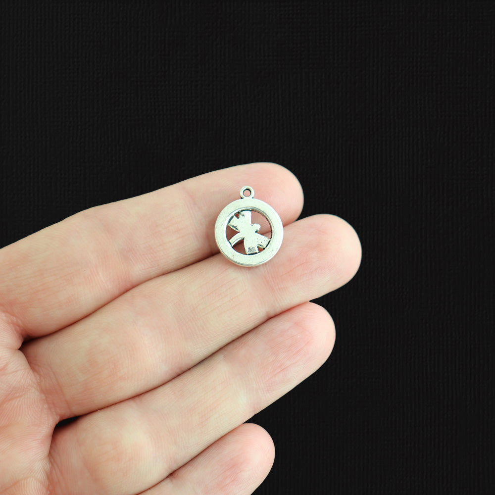 Round dragonfly antique silver tone charms, in a zinc alloy metal.
