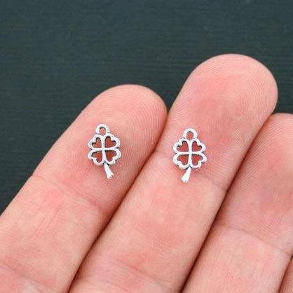 Four leaf clover antique silver tone charms, in a zinc alloy metal.