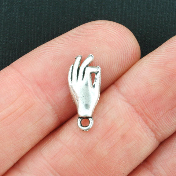 Hand OK sign antique silver tone charms, in a zinc alloy metal.