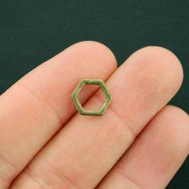 Hexagon linking ring antique bronze tone charms, in a zinc alloy metal.