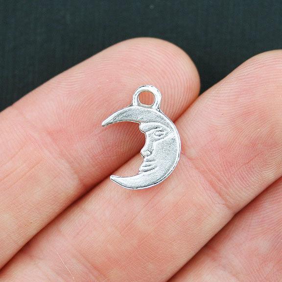 Crescent moon antique silver tone charms, in a zinc alloy metal.