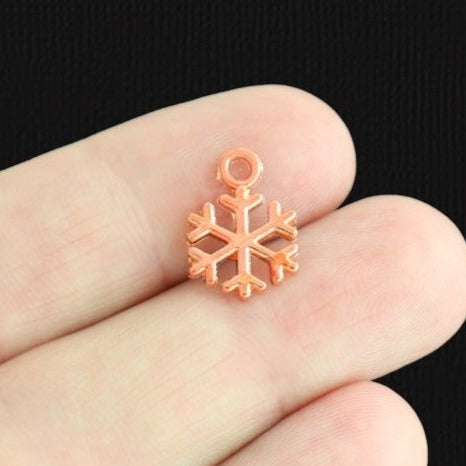 Snowflake rose gold tone charms, in a zinc alloy metal.