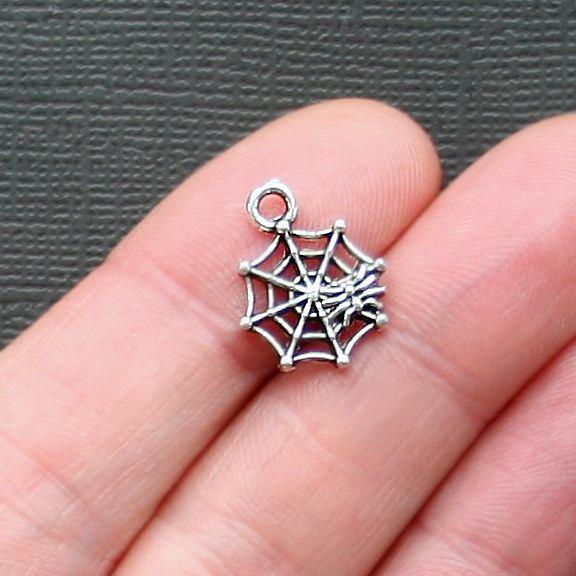 Spider web antique silver tone charms, in a zinc alloy metal.