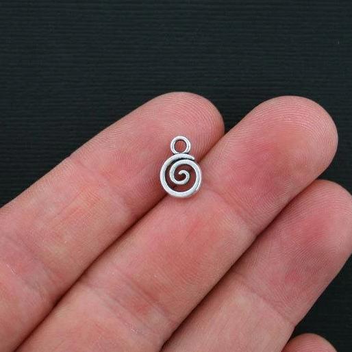 Spiral antique silver tone charms, in a zinc alloy metal.