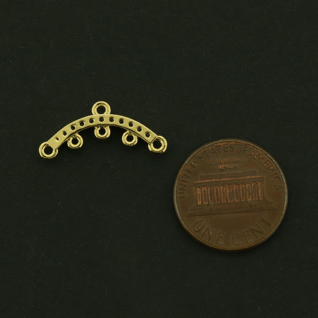 Check out these super useful curved chandelier connectors... They are made of 14k gold plated brass and finished with rhinestones. They are made with 6 loops.