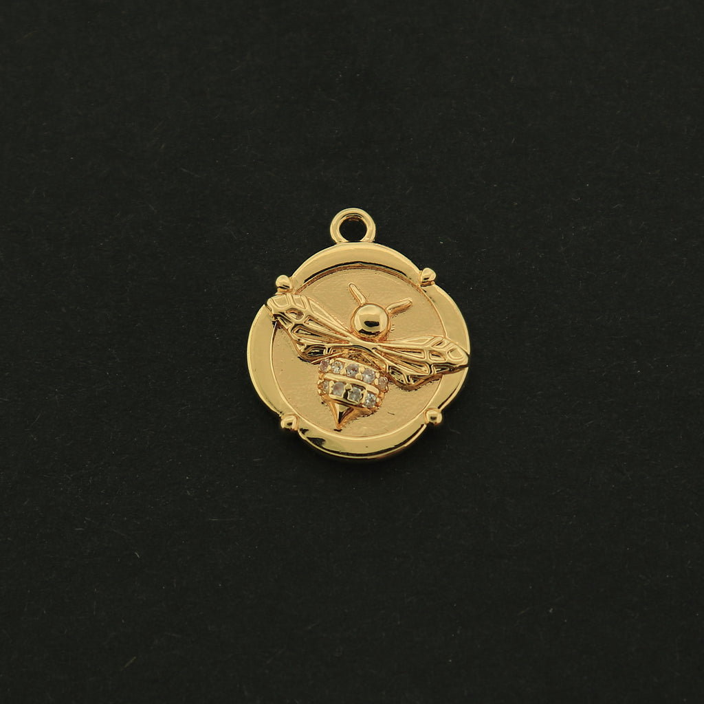 14k Bee Disc Charm - Honeybee Pendant - 14k Gold Plated - GLD364