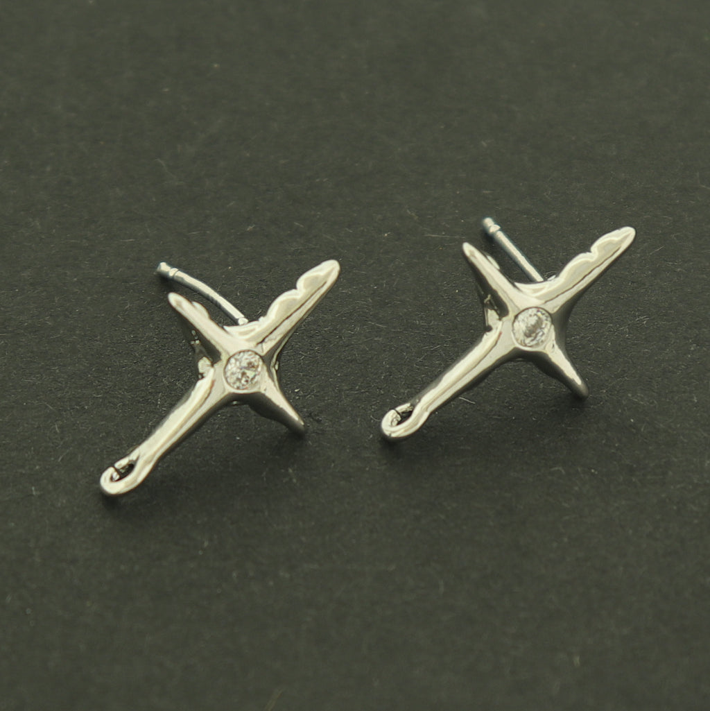 Check out these super detailed cross earrings! Made of 14k gold plated or rhodium plated copper, they are finished with a center rhinestone and include a loop at the bottom.