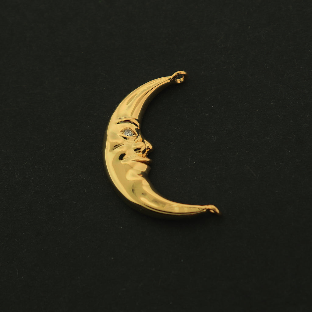 Check out these super cute crescent moon connector charms... made with a CZ rhinestone eye. They are made of 14k gold filled copper.