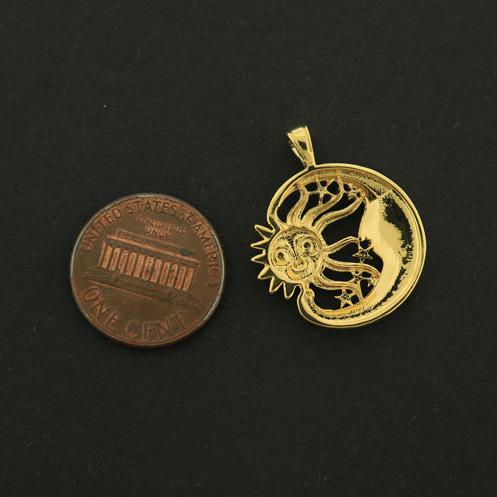 14k Gold Sun and Moon Charm - Crescent Moon Pendant - 14k Gold Filled - GLD228