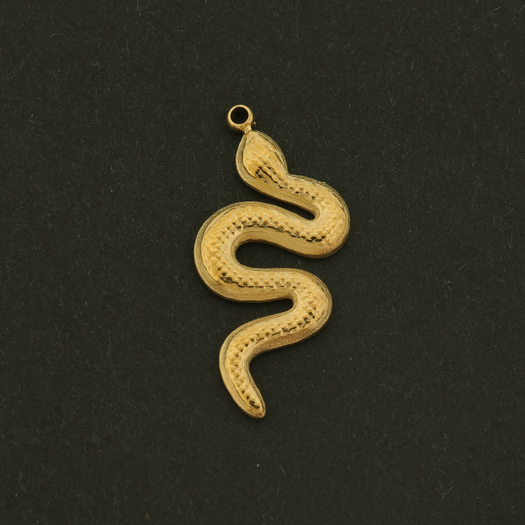 14k Snake Charm - Reptile Pendant - 14k Plated Stainless Steel - GLD763
