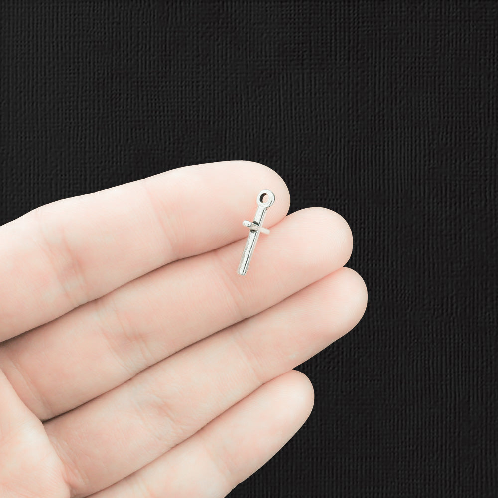 Cross antique silver tone charms, in a zinc alloy metal.