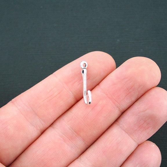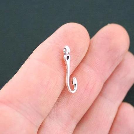 Hook with a sideways loop and hole antique silver tone charms, in a zinc alloy metal.