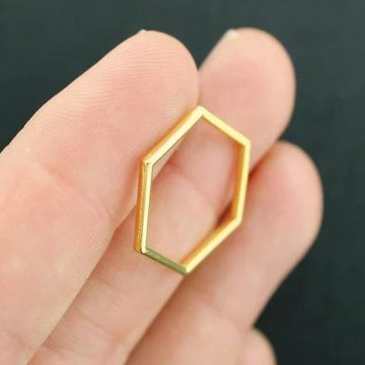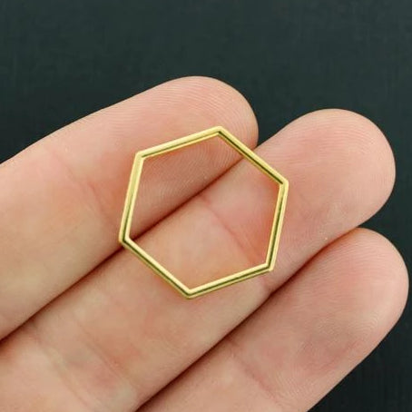 Honeycomb connector linking rings gold tone charms, in a zinc alloy metal.