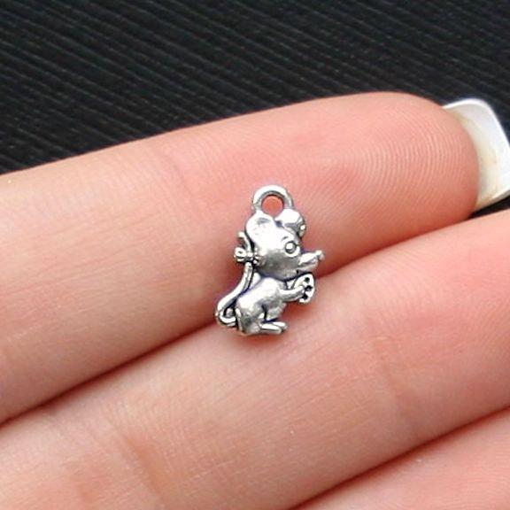 Mouse antique silver tone charms, in a zinc alloy metal.